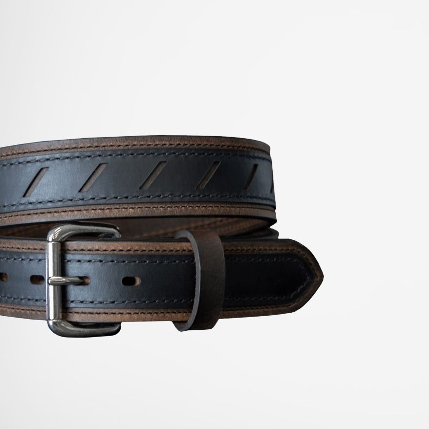 Ceinture en cuir rayée